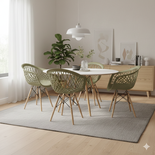 O Conjunto Mesa Eames DSW 110cm Redondo com 4 Cadeiras Web DSW é a escolha ideal para quem busca unir design contemporâneo, conforto e funcionalidade em ambientes internos. Com visual moderno e acabamento em madeira, o conjunto valoriza o espaço, proporcionando um ambiente elegante, acolhedor e perfeitamente adequado para o uso diário. Sua composição equilibrada oferece excelente aproveitamento de espaço, sem abrir mão do conforto e da durabilidade.