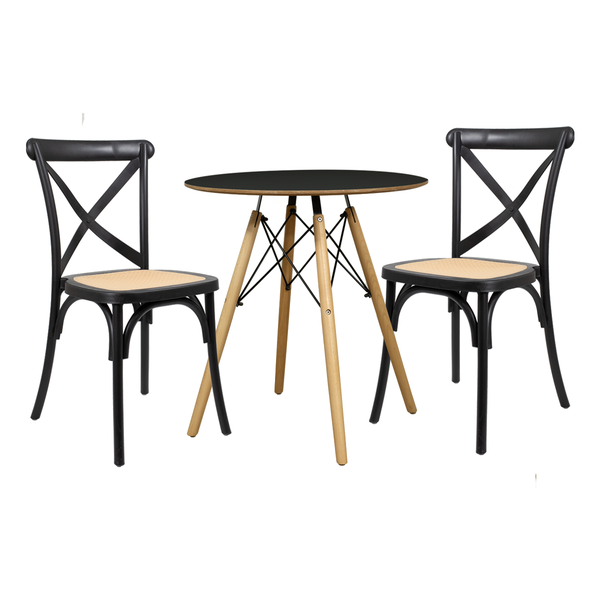 Conjunto Mesa Eames DSW 70cm Redondo com 2 Cadeiras Paris Rattan