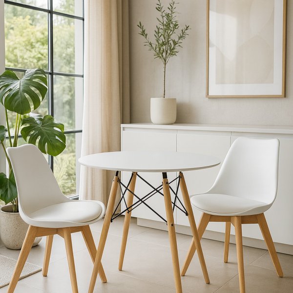 O Conjunto Mesa Eames 70cm com 2 Cadeiras Saarinen Leda Wood é a combinação perfeita entre design icônico e funcionalidade contemporânea. Com inspiração no estilo moderno escandinavo, o conjunto traz a leveza da mesa Eames e o conforto inconfundível das cadeiras Saarinen Leda Wood, que se destacam pelo assento acolchoado e base robusta em madeira.